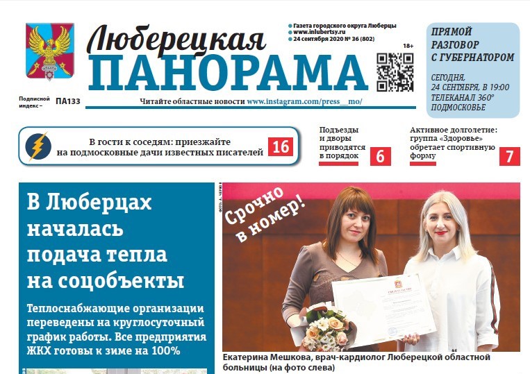 Двадцать четвертого сентября вышел в свет тридцать шестой номер общественно-политической газеты «Люберецкая панорама».