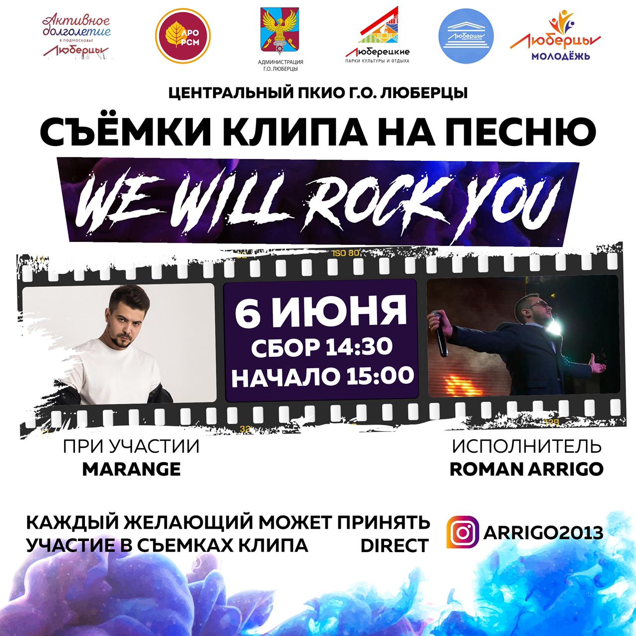 «Всегда мечтали оказаться в свете камер и профессиональных съёмок? Тогда приходите 6 июня к 15:00 в Центральный парк культуры и отдыха Люберец.  Там запланированы съёмки клипа на песню «We will rock you» в исполнении артиста Roman Arrigo», - отмечается в сообщении.