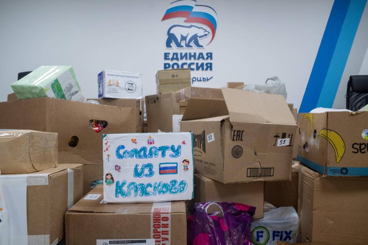Отделение «Союза женщин России» городского округа Люберцы с активистами «Единой России» и школьниками передали порядка 500 килограммов гуманитарной помощи военнослужащим 45-й отдельной гвардейской бригады.