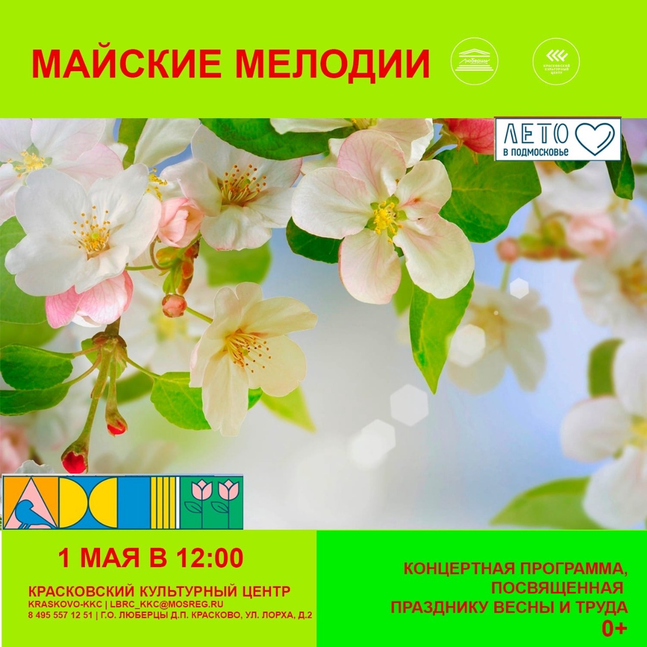 «1 мая в Красковском культурном центре (Красково, улица Лорха, дом №2) состоится концерт «Майские мелодии». Мероприятие приурочено к Международному Дню Труда. Начало в 12.00», - говорится в сообщении.